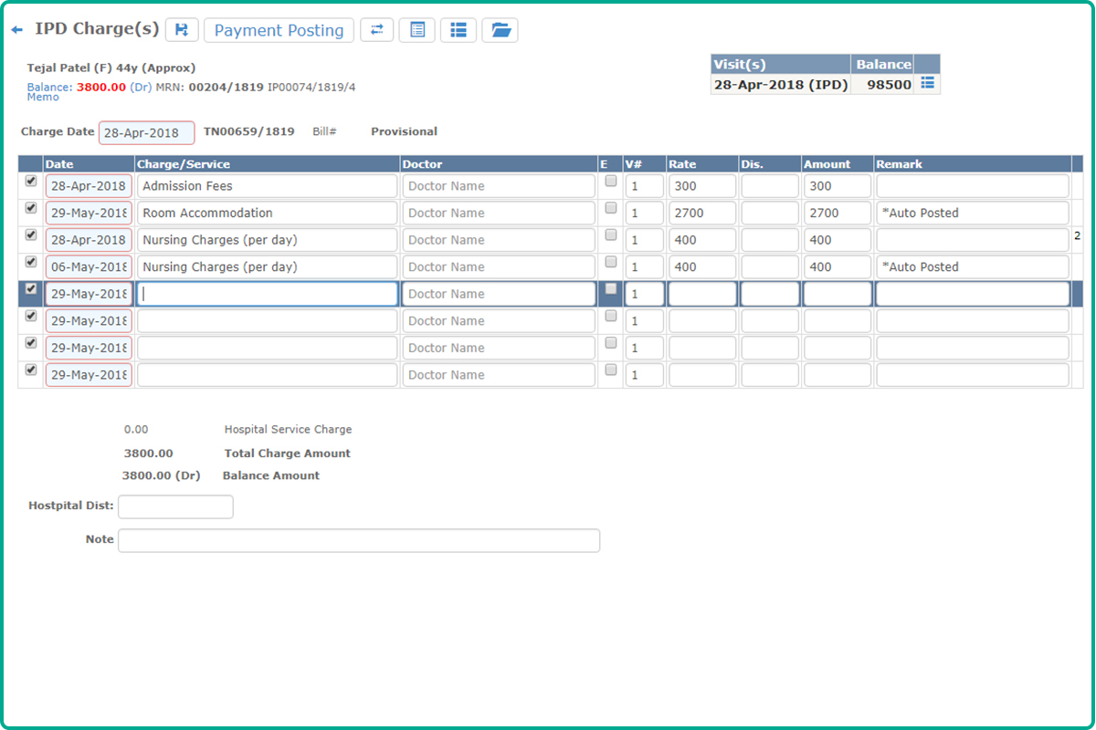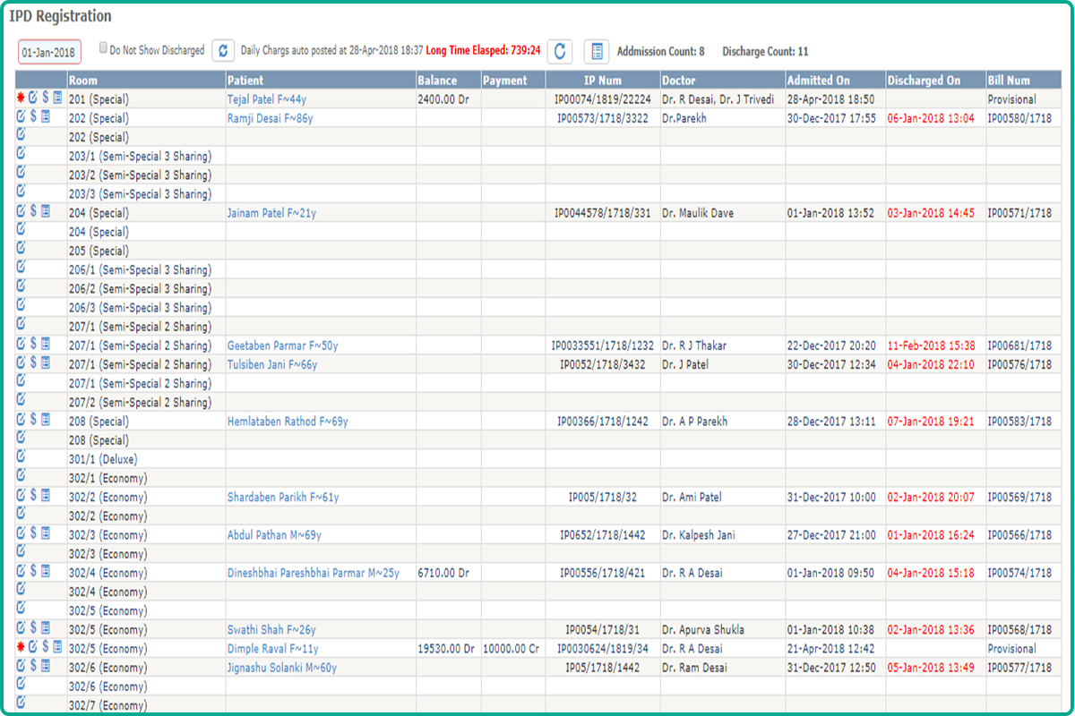 One screen patient registration for OPD and IPD.